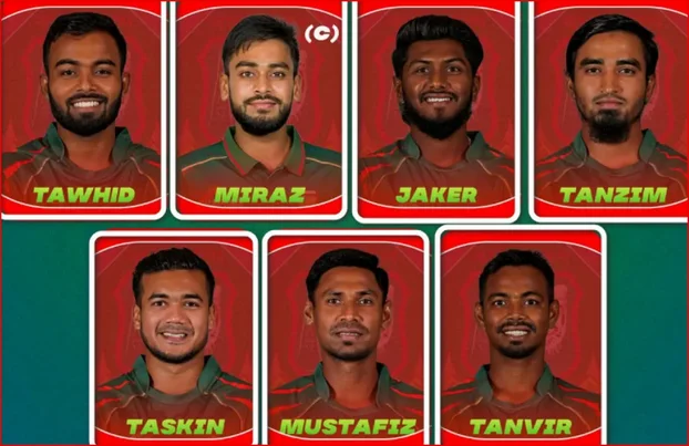ছয় নম্বরে থাকবেন ফিফটি করা জাকির আলী অনিক, আর সাতে খেলতে পারেন রিশাদ হোসেন। পেস বিভাগে থাকছেন তাসকিন আহমেদ, তানজিম হাসান সাকিব ও মুস্তাফিজুর রহমান। স্পিন দায়িত্বে মিরাজ, রিশাদ ও তানভির ইসলাম।